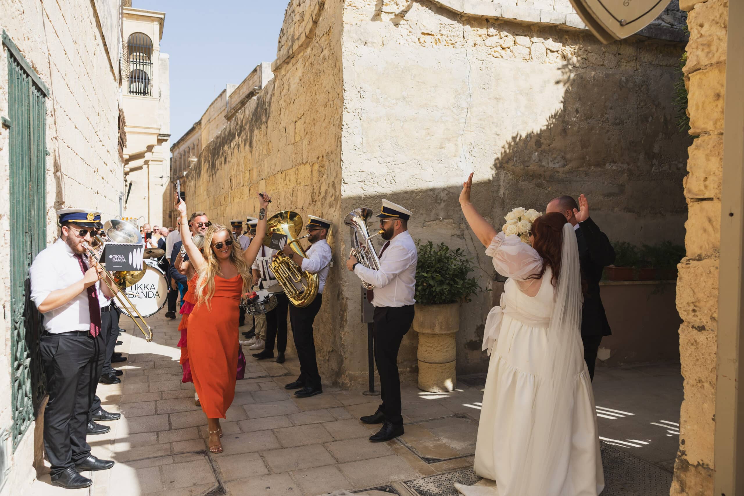 Absolutely! Tikka Banda is renowned for its wedding entertainment services, offering two distinctive live music experiences. Our Traditional Band enriches your celebration with Maltese heritage sounds, performing for 15 to 30 minutes, while our Wedding Crashers Band delivers dynamic, surprise performances lasting from 30 minutes to 1 hour. Each option is crafted to complement your wedding’s theme, ensuring a memorable and vibrant musical experience that enhances the festive atmosphere of your special day.